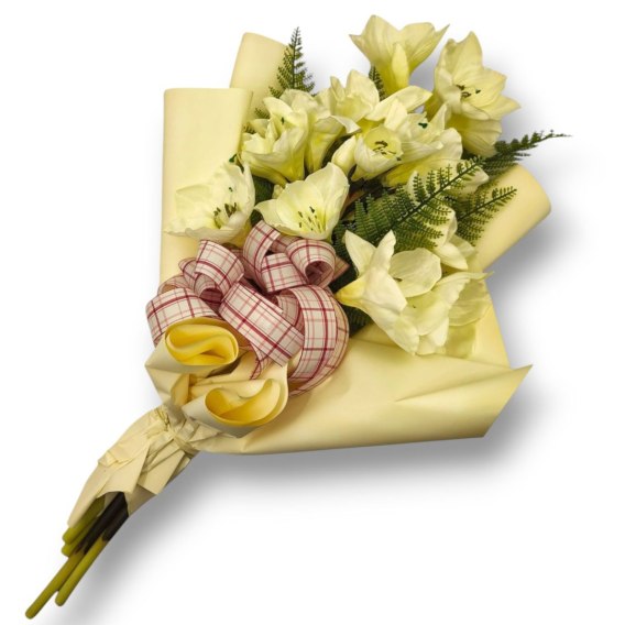 Starannie dobrane kwiaty są niezwykle realistyczne, dodając wiązance autentyczności i podkreślając jej uroczysty charakter.