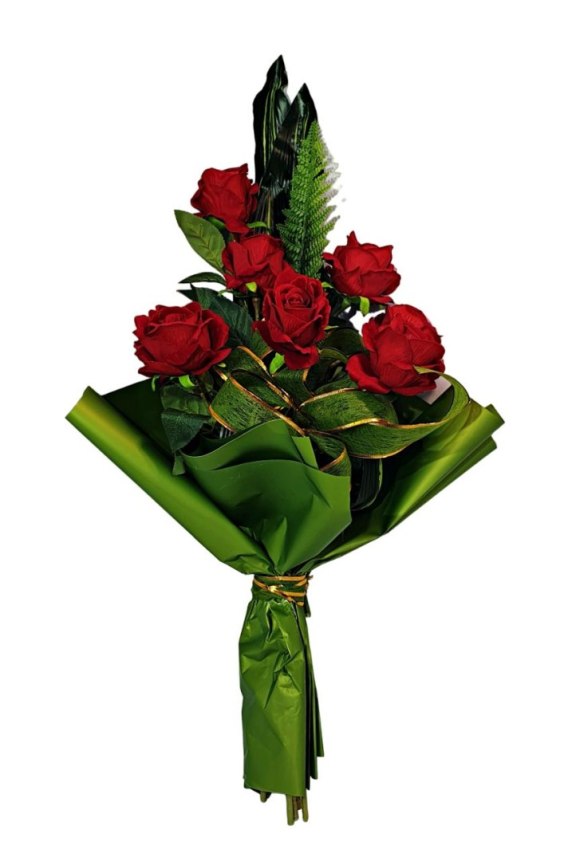 Starannie dobrane kwiaty są niezwykle realistyczne, dodając wiązance autentyczności i podkreślając jej uroczysty charakter.