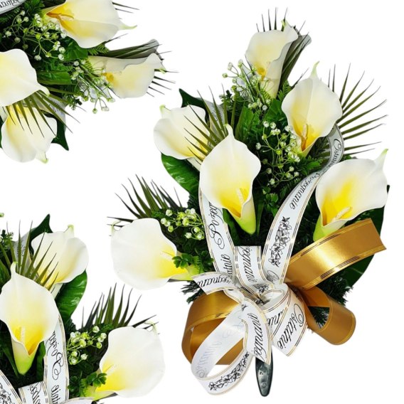 Nasza wiązanka jest starannie ręcznie ozdabiana przez doświadczone dłonie Mistrzyń florystyki, dzięki czemu gotowa kompozycja jest unikatowym elementem, który godnie upamiętni bliską osobę podczas tych trudnych chwil ostatniego pożegnania.