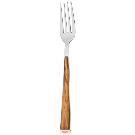 Widelec obiadowy o długości 20,5 cm. Wykonany ze stali nierdzewnej w srebrnym kolorze, posiada uchwyt imitujący drewno. Nadaje się do mycia w zmywarce do naczyń.