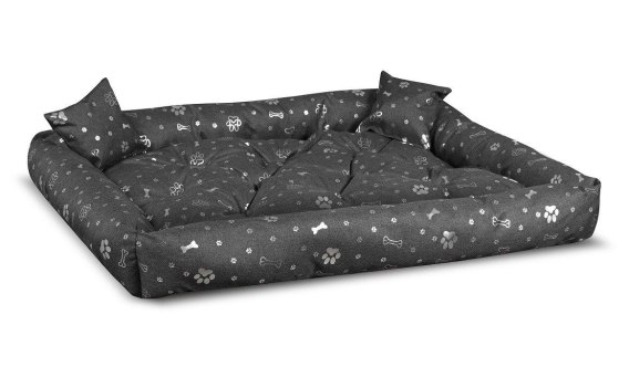 Spód i boki legowiska wykonane z paroizolaczyjnej tkaniny w kolorze czarnym.