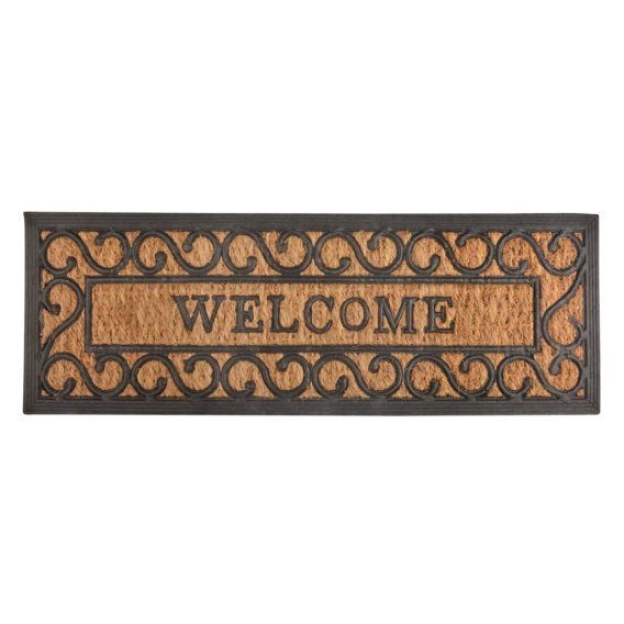 Wycieraczka zewnętrzna Welcome 75x25cm to doskonały produkt dla osób, które chcą zadbać o czystość swojego domu. Ta podłużna wycieraczka posiada klasyczny wiktoriański wzór z wdzięcznymi lokami, który dodaje elegancji i stylu do każdego wejścia. Wycieraczka jest piękna i równie dobrze sprawdzi się wewnątrz jak i na zewnątrz domu.