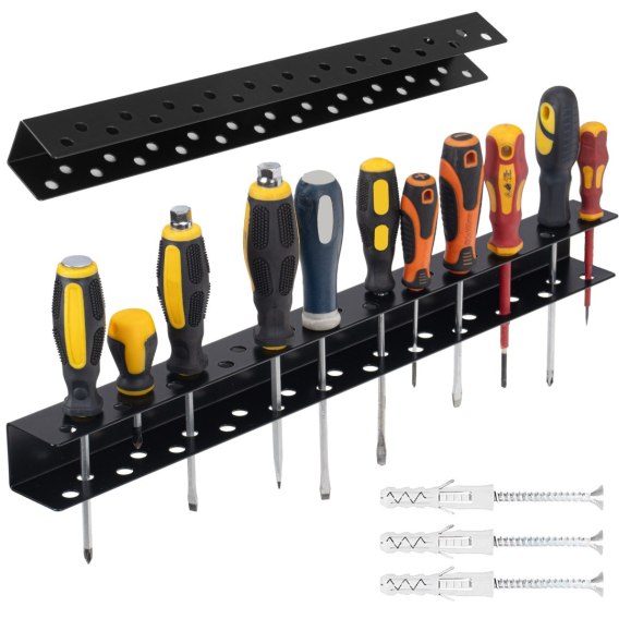 Wieszak na narzędzia marki Carmin to doskonałe rozwiązanie dla osób, które chcą utrzymać porządek i zoptymalizować organizację w warsztacie, garażu czy piwnicy. Dzięki wytrzymałej metalowej konstrukcji pokrytej czarną powłoką proszkową, wieszak jest nie tylko solidny, ale także stylowy, pasując do różnych przestrzeni. Pomieści aż 23 wkrętaki, zapewniając wygodny dostęp do narzędzi i lepsze zarządzanie miejscem pracy. Montaż na ścianie jest prosty, a zestaw zawiera wszystkie niezbędne elementy. Szyna ścienna Carmin zyskujesz porządek, oszczędność miejsca oraz lepszą organizację narzędzi.
