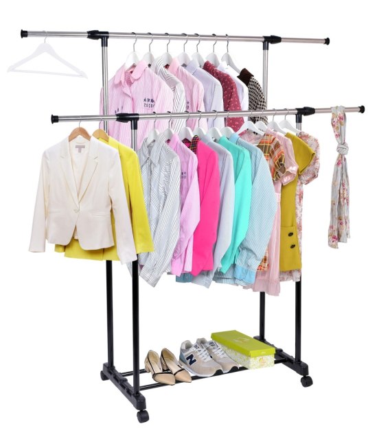 Praktyczny i wytrzymały wieszak garderobiany na kółkach. Wieszak sprawdzi się w każdym domu i w biurze, w którym brakuje miejsca do powieszenia odzieży. Nasz produkt został wyposażony w pojedynczy chromowany drążek, który pomieści dużo odzieży. Dodatkowym atutem wieszaka jest wytrzymała i zaskakująco pojemna półka na buty, oraz nakładki na końce drążka uniemożliwiające zsunięcie się odzieży. Montaż wieszaka jest niezwykle prosty i nie wymaga użycia narzędzi.