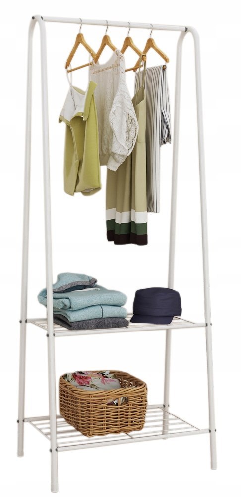 Jego przeznaczenie zależy od Ciebie. Wieszak wyposażony w górny drążek oraz dwie półki w dolnej części.