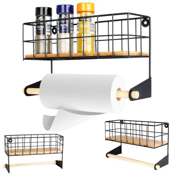 POMOŻE W ORGANIZACJI - Praktyczna, ścienna półka pomoże w zorganizowaniu miejsca w kuchni, posiada uchwyt na ręcznik papierowy oraz miejsce na przyprawy, artykuły spożywcze czy inne kuchenne gadżety. Wymiar całkowity wynosi 32 x 10 x 18 cm.