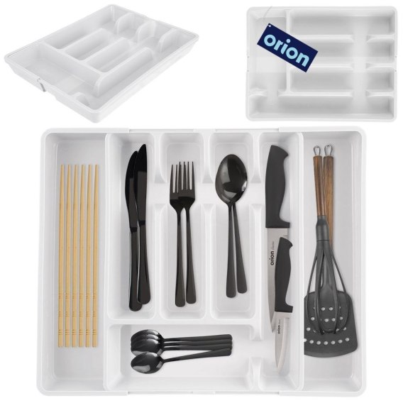 Regulowany organizer na sztućce jest przydatny w każdej kuchni. Umożliwia przechowywanie różnych akcesoriów kuchennych, takich jak sztućce, noże czy inne drobne przedmioty, w sposób uporządkowany i zorganizowany. Taca do szuflady pozwoli odpowiednio zagospodarować przestrzeń oraz utrzymać porządek wewnątrz szuflady. Łatwy w czyszczeniu i wygodny w użytkowaniu. Wkład jest regulowany, co umożliwia łatwe dopasowanie do każdej szuflady. Oryginalny produkt czeskiej marki Orion. Wyprodukowano zgodnie z europejskimi standardami.