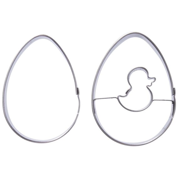 Zestaw dwóch wykrawaczy cukierniczych wykonanych ze stali nierdzewnej. Idealny do ciastek i pierników. Foremki są w kształcie jajka, dzięki nim stworzysz oryginalne ciastka.