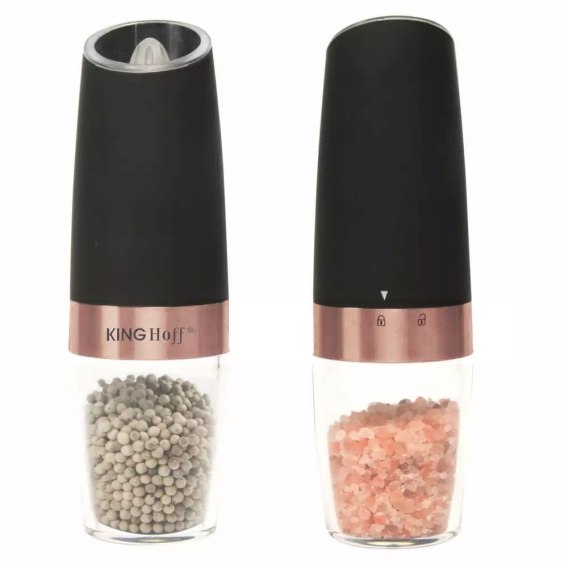 Zestaw 2 grawitacyjnych młynków elektrycznych do soli lub pieprzu firmy KINGHOFF.