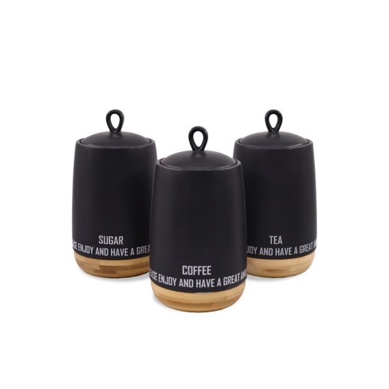 ZESTAW 3 POJEMNIKÓW CERAMICZNYCH NA KAWĘ HERBATĘ I CUKIER MAESTRO ECO STYLE MR-20029-03CS