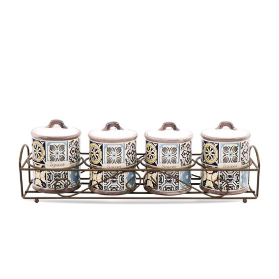 Zestaw 4 ceramicznych pojemników na przyprawy marki MAESTRO z metalowym stojakiem
