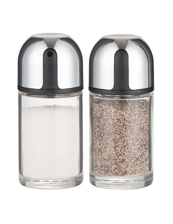 W skład zestawu wchodzą 2 pojemniki o pojemności 100g. W komplecie znajduje się solniczka i pieprzniczka.