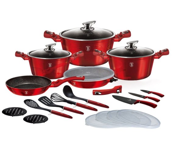 22-elementowy zestaw garnków BERLINGER HAUS z serii METALLIC LINE -BURGUNDY