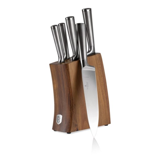 Zestaw noży w bloku akacjowym 6 elementów BERLINGER HAUS z serii Antracit. Noże Berlinger Haus zostały zaprojektowane z myślą o wygodnym, dobrze wyważonym chwycie, a jednocześnie umożliwiają pełne wykorzystanie wgłębień na ostrzu, co nie tylko dodaje stylu, ale pomaga wykonać cienkie plastry i lepkie jedzenie po pokrojeniu. Szczególne cechy czynią ten rodzaj noży idealnym do wielu zadań związanych z krojeniem w kuchni.