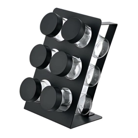 Elegancki i praktyczny stojak na przyprawy w kolorze czarnego matu to idealne rozwiązanie dla każdej kuchni. Wykonany z wysokiej jakości metalu, łączy nowoczesny design z trwałością.