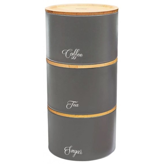 Zestaw 3 pojemników z pokrywkami bambusowymi do przechowywania produktów sypkich typu herbata, kawa, cukier.
