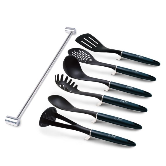 ZESTAW PRZYBORÓW KUCHENNYCH Z RELINGIEM 7-ele BERLINGER HAUS AQUAMARINE BH-6326