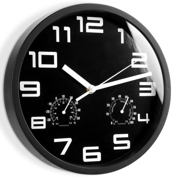 Zegar ścienny czarny z termometrem higrometrem 25 cm VILDE